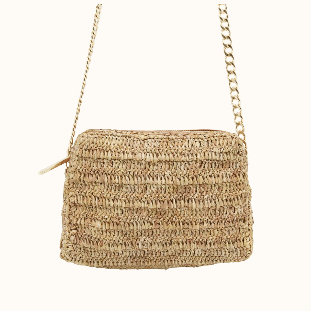 Raffia with Cowhide Leather Sling Bag - IK226512