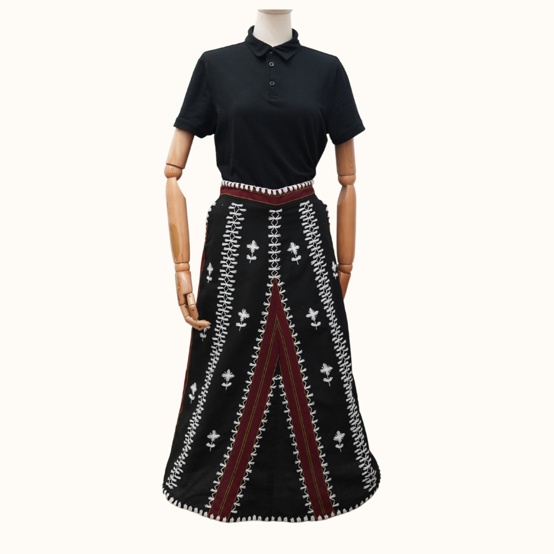 Kantarines Long Skirt with Itneg Embroidery and Red Broad Stripes